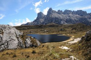 | 20.10.2013 Sie durchqueren wunderschöne Hochmoorlandschaften mit einigen Seen und etlichen Flüssen. Bei Hochwasser kann die Überquerung dieser Gewässer Probleme bereiten! Zeltlager am Ende der Larson-Drainage 4000 m nahe der Latolampege Höhle. |